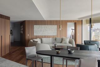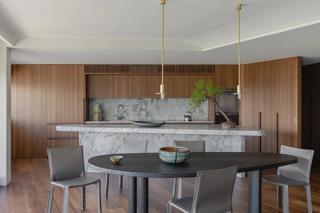 On the 34th floor of Sydney’s Horizon Tower, Brad Swartz Architects reimagined the interior landscape of two previously combined apartments into a seamless home. A layering of material palettes subtly shift from zone to zone, presenting a calm, comforting backdrop to the expansive harbour views.